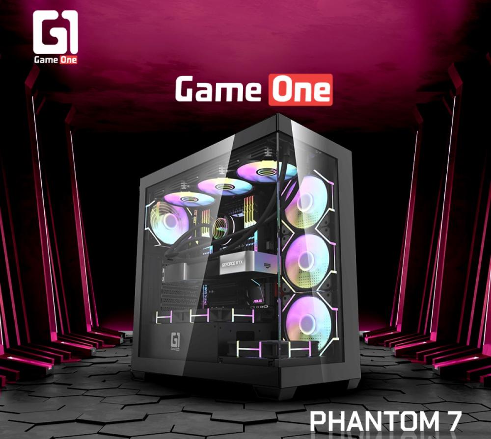 GameOne Phantom 7 – Premium Black Gaming Case with 7 ARGB Fans & Tempered Glass Design